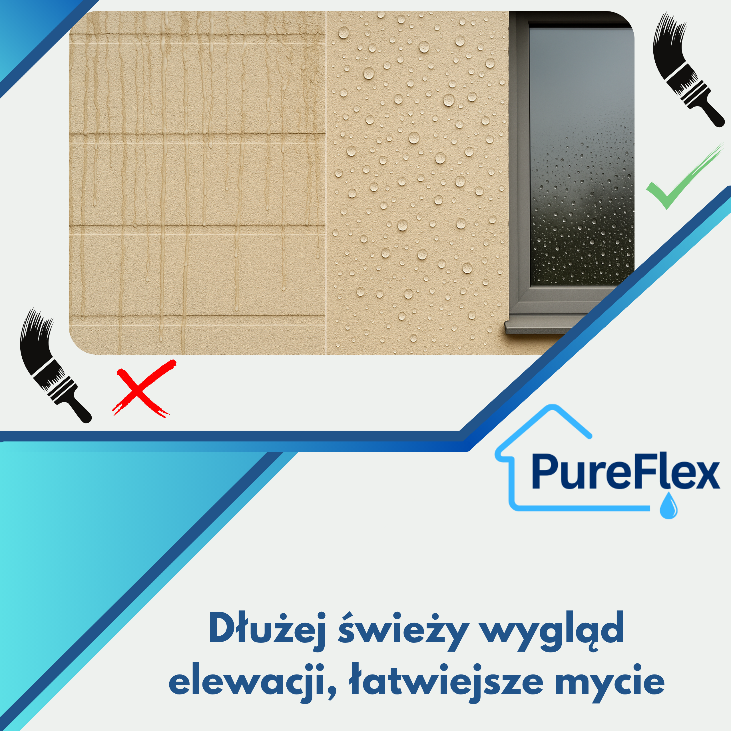 Każdy sezon zostawia ślady: woda wsiąka w tynk, pojawiają się zacieki, wykwity i brzydkie przebarwienia. Elewacja szybciej się starzeje, a Ty tracisz czas i pieniądze na częste mycie. PureFlex PF30 HYDROTYNK to prosta odpowiedź: impregnat do tynków elewacyjnych każdego rodzaju i okładzin elewacyjnych, który nadaje powierzchni hydrofobowość – bez zmiany koloru i faktury. Utrzymaj elewację w najlepszej kondycji.