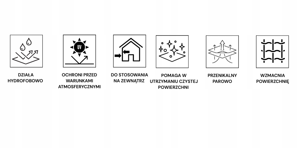 Hydrofobowa ochrona blokuje wchłanianie wody co utrudnia rozwój alg i porostów. Powierzchnia pozostaje więc dłużej czysta, a ewentualne mycie jest rzadsze i krótsze.