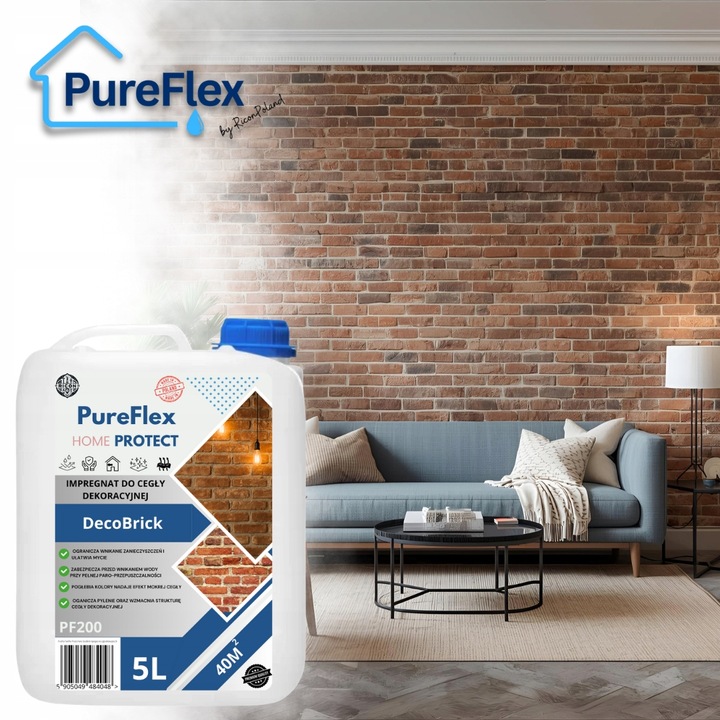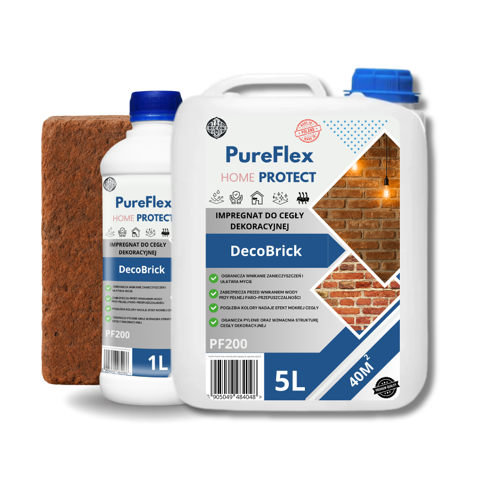 Impregnat do starej cegły PureFlex Home PF200 DecoBrick łączy estetykę (efekt „mokrej” cegły z lekkim połyskiem) i praktyczną ochronę (hydrofobowość, łatwiejsze utrzymanie w czystości, ograniczenie pylenia). Jeśli chcesz, by Twoja ściana z cegły wyglądała spektakularnie i starzała się wolniej, to jest produkt, po który warto sięgnąć.