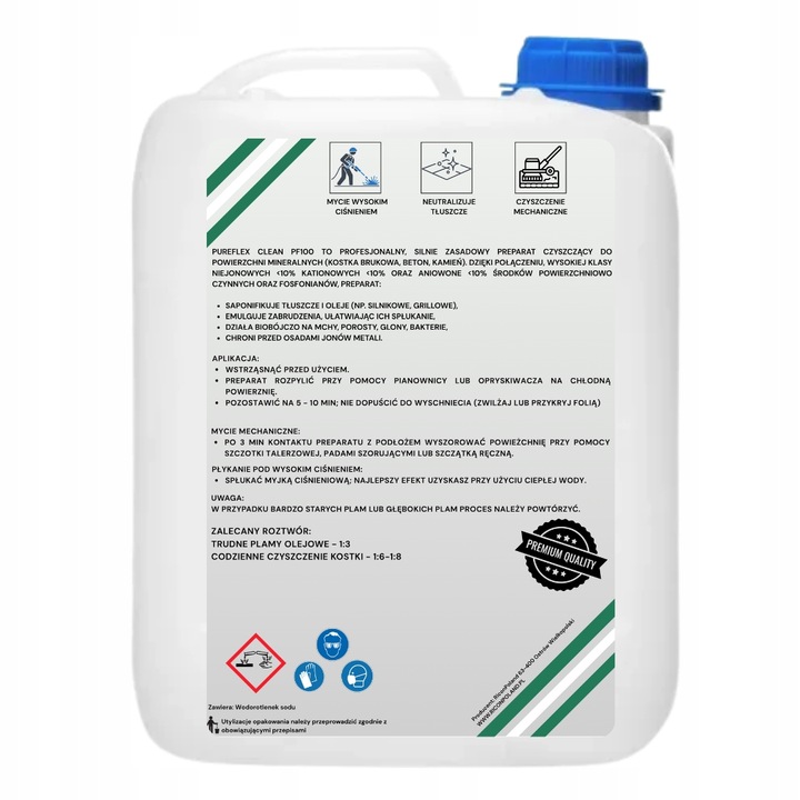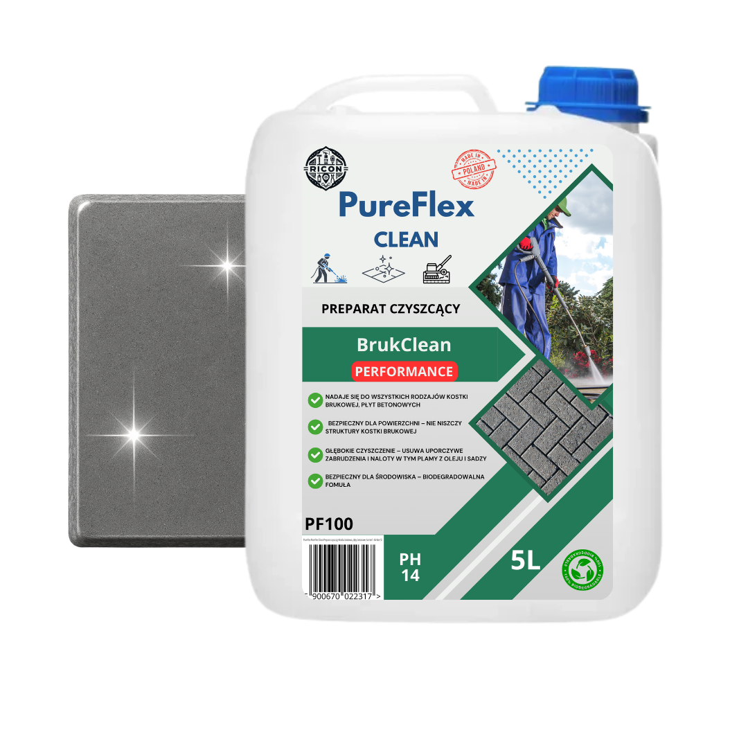 Szukasz środka, który naprawdę „odklei” brud z kostki i betonu? PureFlex Clean PF100  usuwa zabrudzenia drogowe, błoto, osady po zimie, zielone naloty (algi/mchy), sadzę i zaschnięty kurz z porowatych nawierzchni betonowych. Działa szybko, jest wydajny i bezpieczny dla czyszczonej powierzchni przy prawidłowym użyciu.